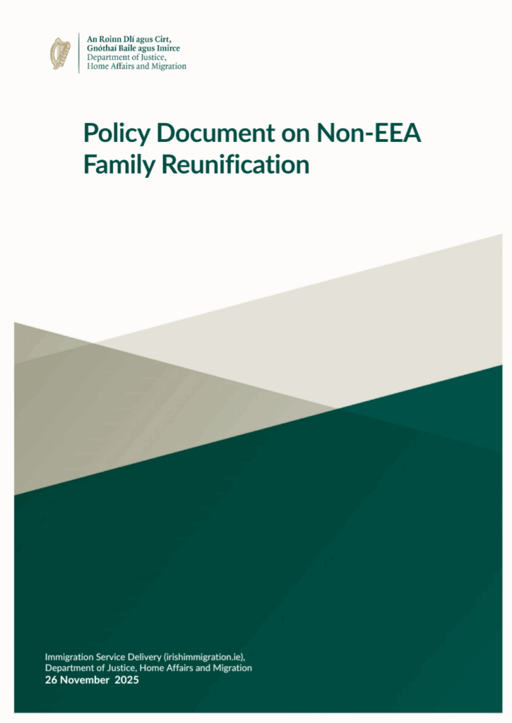 The Government has announced changes to the policies around sponsoring family members to come to Ireland. Go to the official link by clicking Revised Non-EEA Family Reunification Policy and Final Report on the Review of the Policy We will update our dedicated page on this topic over the next month. For any queries please contact us
